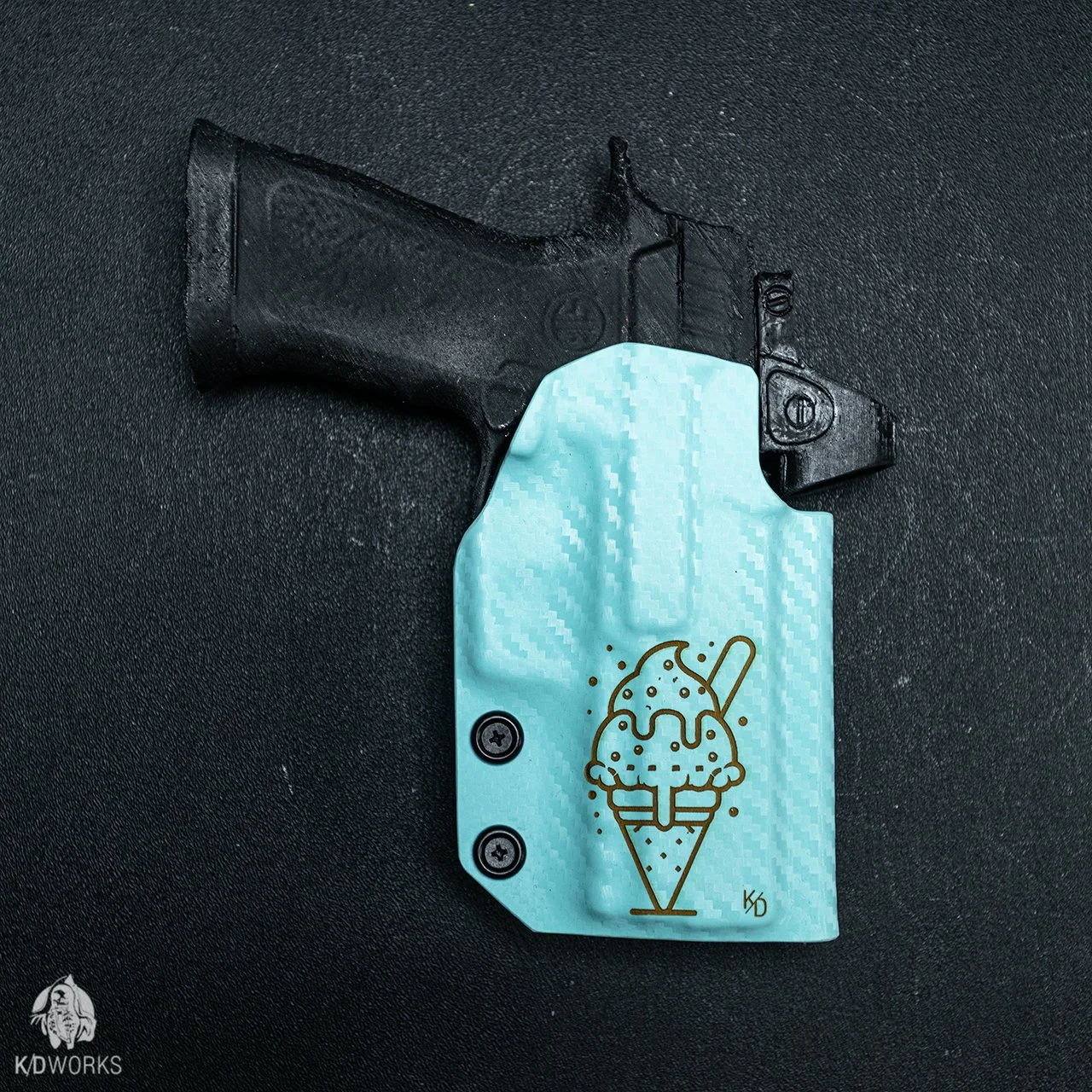 บริการยิงเลเซอร์สร้างลายซอง Kydex กับ KD works custom Kydex Laser Overlay series